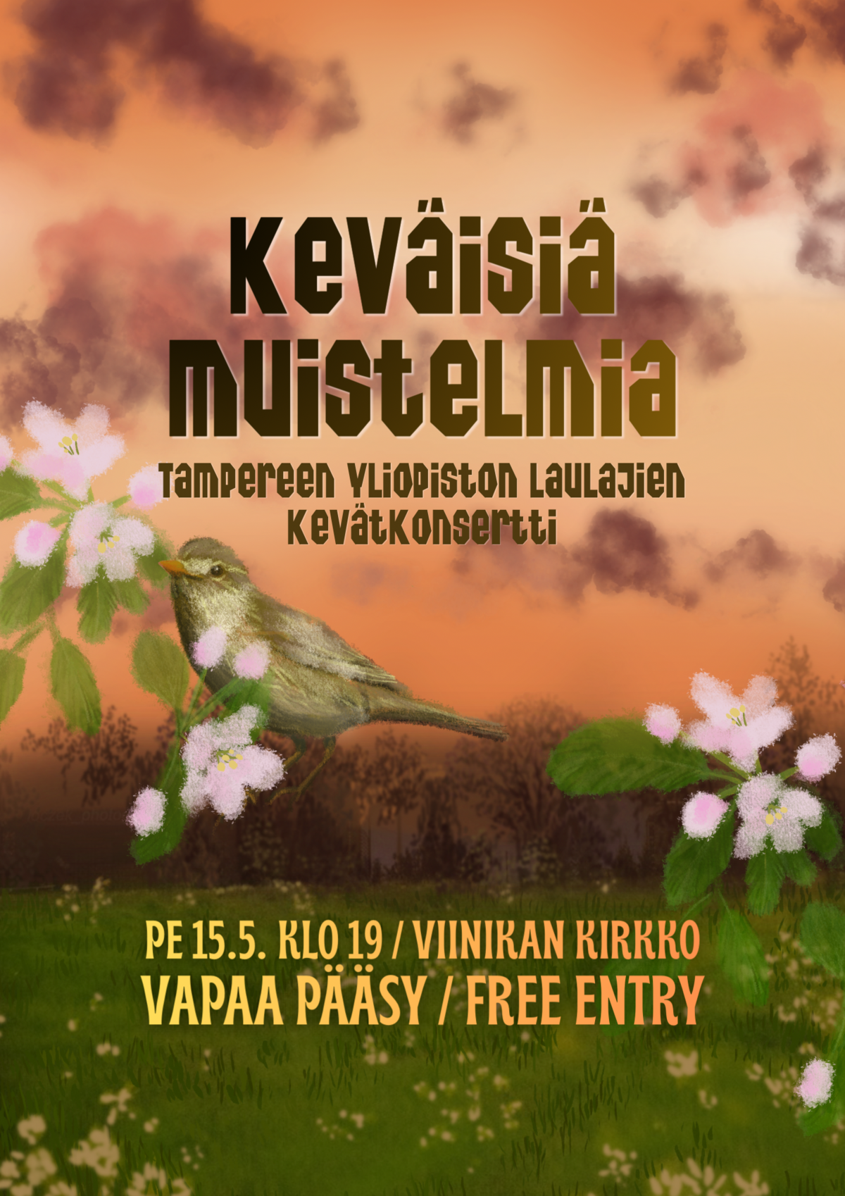 Come with Tampereen Yliopiston Laulajat to experience a spring night from your youth, where a warm breeze gently brushes against your face and the earth smells of a thunder storm just passed.